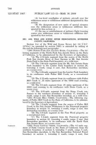 ‘‘(F) The 2.91-mile segment from the Stone Creek con- fluence to the northern boundary of section 17, township 5 south, range 2 east, San Bernardino meridian, as a wild river. ‘‘(201) FULLER MILL CREEK, CALIFORNIA.—The following seg-