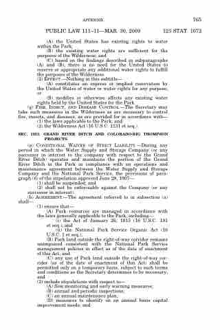 (a) CONDITIONAL WAIVER OF STRICT LIABILITY.—During any period in which the Water Supply and Storage Company (or any successor in interest to the company with respect to the Grand River Ditch) operates and maintains the portion of the Grand River Ditch in the Park in compliance with an operations and maintenance agreement between the Water Supply and Storage Company and the National Park Service, the provisions of para- graph (6) of the stipulation approved June 28, 1907—