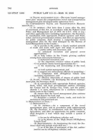 of enactment of this Act, in accordance with the Federal Land Policy and Management Act of 1976 (43 U.S.C. 1701 et seq.) and other applicable laws (including regulations), the Secretary, in consultation with appropriate Federal agencies and State, tribal, and local governmental entities, and after an opportunity for public comment, shall develop a comprehensive travel management plan for the land managed by the Bureau of Land Management in the County—