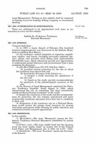 (4) the Bureau of Land Management completed the Paleo- zoic Trackways Scientific Study Report in 1994, which characterized the site as containing ‘‘the most scientifically significant Early Permian tracksites’’ in the world;