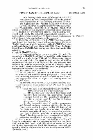 (iii) funding made available through the FLAME Fund should be used to supplement the funding other- wise appropriated to the Secretary concerned for wild- fire suppression and Federal emergency response in the Wildland Fire Management appropriation accounts. AVAILABILITY.—Amounts in a FLAME Fund shall