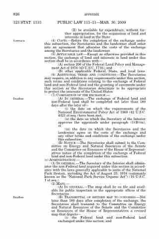 mittee on Energy and Natural Resources of the Senate and the Committee on Resources of the House of Represent- atives notice of the completion of the exchange of Federal land and non-Federal land under this subsection.