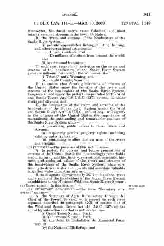 the United States enjoy the benefits of the rivers and streams of the headwaters of the Snake River System, Congress should apply the protections provided by the Wild and Scenic Rivers Act (16 U.S.C. 1271 et seq.) to those rivers and streams; and