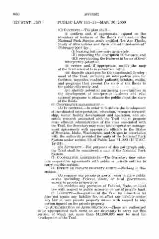 (B) modifies any provision of Federal, State, or local law with respect to public access to or use of private land. (9) LIABILITY.—Designation of the Trail by subsection (c)