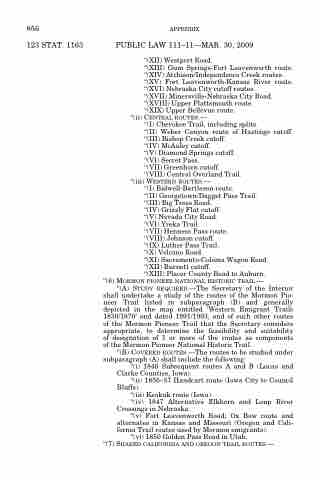 ‘‘(XIII) Gum Springs-Fort Leavenworth route. ‘‘(XIV) Atchison/Independence Creek routes. ‘‘(XV) Fort Leavenworth-Kansas River route. ‘‘(XVI) Nebraska City cutoff routes.