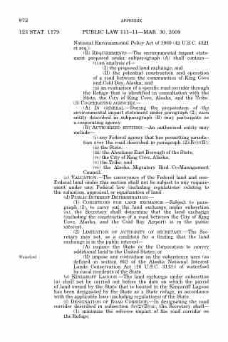 of a road between the communities of King Cove and Cold Bay, Alaska; and