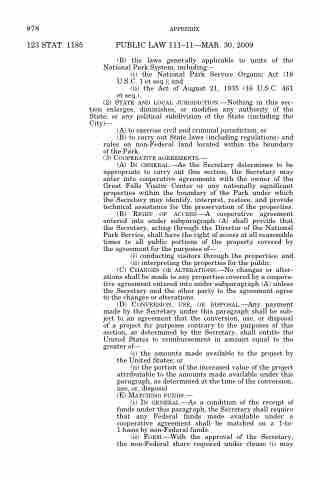 (A) IN GENERAL.—As the Secretary determines to be appropriate to carry out this section, the Secretary may enter into cooperative agreements with the owner of the Great Falls Visitor Center or any nationally significant properties within the boundary of the Park under which the Secretary may identify, interpret, restore, and provide technical assistance for the preservation of the properties.