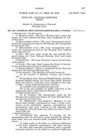 PUBLIC LAW 111–11—MAR. 30, 2009 TITLE VIII—NATIONAL HERITAGE