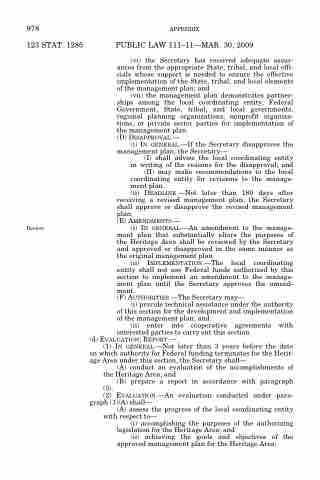 (A) conduct an evaluation of the accomplishments of the Heritage Area; and