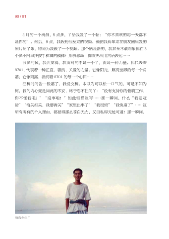的每一个心田 征稿时间告一段落了 我没交稿。本以为可以松一口气的 可是不知为 何 我的内心竟是如此的不安 终于忍不住问丫:“没有支持你的催稿工作 你不怪我吧?”“没事啦!”如此轻描淡写 那一瞬间 什么“我要赶 货”“海关扣关 我要清关”“家里出事了”“我很烦”“我快崩了” 这 所有所有的个人理由 都显得那么苍白无力 又自私得无处可遁!那一瞬间 海边少年丫