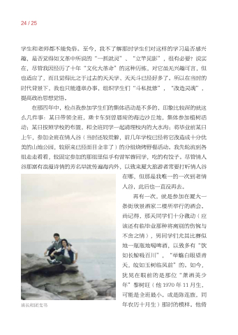 学生和老师都不能免俗。至今 我不了解那时学生们对这样的学习是否感兴 趣 是否觉得如文革中所说的“一抓就灵”、“立竿见影” 很有必要?说实 在 尽管我因经历了十年“文化大革命”的这种历练 对它虽无兴趣可言 但 也适应了 而且觉得比之于过去的天天学、天天斗已经好多了。所以在当时的 时代背景下 我也只能遵章办事 组织学生们“斗私批修” “改造灵魂” 提高政治思想觉悟。