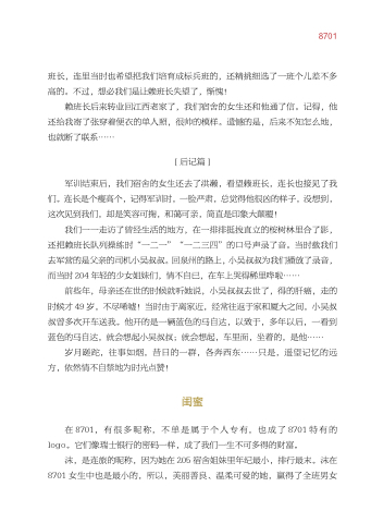 赖班长后来转业回江西老家了 我们宿舍的女生还和他通了信。记得 他 他 还给我寄了张穿着便衣的单人照 很帅的模样。遗憾的是 后来不知怎么地 也就断了联系 [ 后记篇 ]