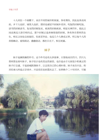 十人同住一个屋檐下 来自不同的城市和家庭 各有秉性 因此也各具风 流。乡下人也好 城里人也好 那时也感觉不到城乡差异。吃饭的时候吃饭 读书的时候读书 发呆的时候发呆 夜谈的时候夜谈 相安无事四年 彼此之 间还真没人怒目相向过。那个时候正是青春怒放的时候 各有各自喜欢的女 生 相互之间也交流取经 但直至毕业 也没几个人修成正果。所以每个人的 青春躁动、爱情萌动、蠢蠢欲动 都在日光下 相互袒露。