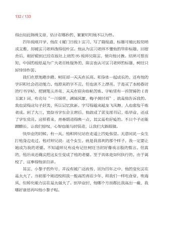得出如此锦绣文章 估计在哪抄的 絮絮叨叨地不以为然。 四年级刚开学 他在《厦门日报》实习 写了篇报道 标题可能比较花哨