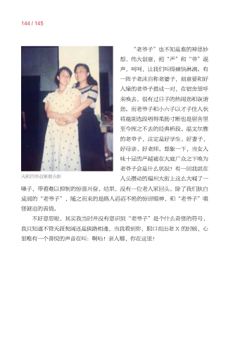 “老爷子”也不知是谁的神思妙 想、伟大创意 把“严”和“爷”混 声 呵呵 让我们叫得痛快淋漓。有 一阵子老沫自称老婆子 刻意要和好 人缘的老爷子搭成一对 在宿舍里呼 来唤去 很有过日子的热闹劲和诙谐 劲。而老爷子和小六子以才子佳人状 将越剧选段唱得柔肠寸断也是宿舍里 至今挥之不去的经典桥段。温文尔雅 的老爷子 注定是好学生、好妻子、 好母亲、好老师。想象一下 当女人 味十足的严越被在大庭广众之下唤为 老爷子会是什么状况?有一回我就在 人头攒动的福州大街上这么大喊了一