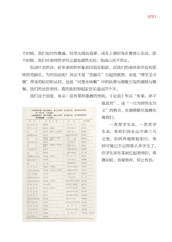 着我们。 一茬茬学生走 一茬茬学 一茬茬学 生来 老师们却永远守着三尺 之地 如西西福斯般躬行。老 师可能已不记得那么多学生了 但学生却在某刻忆起老师时 尊 敬如初 恭爱弥深 仰止有加。