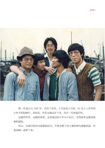 那一年是公元 1987 年 年 年 年 农历丁卯年。8 月底或 9 9 月初 60 名十八年华的 小伙子和姑娘们 来到这 并在这海边住下来 而且一住就是四年。