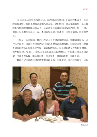 92 年之所以决定去福州过年 是因为在武汉的日子实在太难过了 无比 深的暗夜啊。我也不顾是否在别人家过年 会扫他们一家过年的雅兴 反正我 没心没肺地就直扑陈忠家去了。陈忠家住在福建新闻出版局的院子里 一楼。 他家三兄弟都和父母住一起 不过陈忠在院子里还有一间单身宿舍 可容我栖 身。