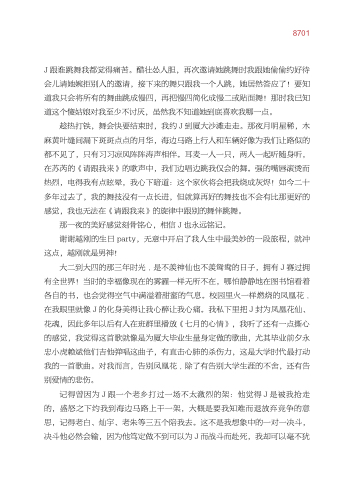 J 跟谁跳舞我都觉得痛苦。醋壮怂人胆 再次邀请她跳舞时我跟她偷偷约好待 会儿请她婉拒别人的邀请 接下来的舞只跟我一个人跳 她居然答应了!要知 道我只会将所有的舞曲跳成慢四 再把慢四简化成慢二或贴面舞!那时我已知 道这个傻姑娘对我至少不讨厌 虽然我不知道她到底喜欢我哪一点。