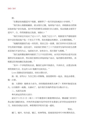 “其中一个学校的校长说 像我们这种不图虚名 不讲形式 注重实际效 果的捐助方式 在这次 4 20 地震中比较突出。”