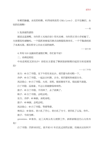 林风云:@ 陈东 老六乱了芳心 老白乱了方寸 老四乱了头发 你牛。 旅子:今宵当醉。