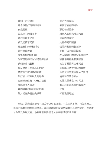 后记:答应过东要写一篇关于 204 的文章 一直无从下笔 再怎么努力 也写不出其中的精彩与挣扎。在此感谢阿封友情赞助其中最美的诗句 并感谢 丫头帮我数易其稿。最要感谢陪我渡过大学四年时光的七姐妹。