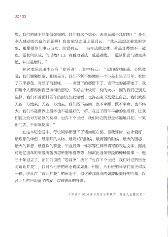 您 我们的班主任争得荣誉的。我们有这个信心:未来是属于我们的!”多么 令人感动而兴奋的话语啊!我也在纪念册上题词云:“我永远想念着我的学 生 更期望你们事业成功。前贤有云:‘古今成败之林 若是其莽然不一途 也。要其何以成 何以败?曰:有毅力者成 反是者败。’愿以斯言与诸生共 勉 并以是赠行。”