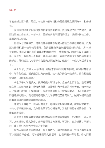 八七学子的集体荣誉感在其后的大学生活中犹如清泉 汩汩而出 遍及学 习、文体活动、诗文创作、各种竞赛等方方面面。可以说 奋力拼搏、不落人 后 成了他们四年大学生活的主色调。