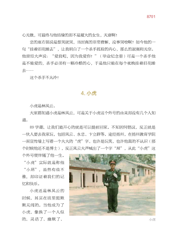 4 小虎 大家都知道小虎是林风云 可是关于小虎这个外号的由来却没有几个人知 道。