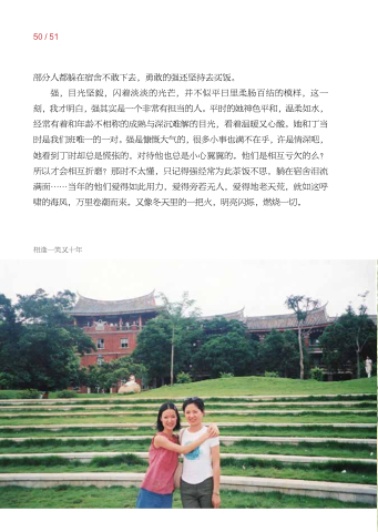 刻 我才明白 强其实是一个非常有担当的人。平时的她神色平和 温柔如水 经常有着和年龄不相称的成熟与深沉难解的目光 看着温暖又心酸。她和丁当 时是我们班唯一的一对。强是慷慨大气的 很多小事也满不在乎 许是情深吧 她看到丁时却总是慌张的 对待他也总是小心翼翼的。他们是相互亏欠的么? 所以才会相互折磨?那时不太懂 只记得强经常为此茶饭不思 躺在宿舍泪流 满面 当年的他们爱得如此用力 爱得旁若无人 爱得地老天荒 就如这呼 啸的海风 万里卷潮而来。又像冬天里的一把火 明亮闪烁 燃烧一切。