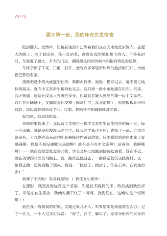 悲剧的事情来了:我找遍了芙蓉四一楼中文系男生新生宿舍的每一间、每 一个床铺 就是没有发现我的名字。接我的学长也不信 也找了一遍 结果也 是没有。十九岁的我无法判断和解释这件蹊跷的事 只能尴尬地站在走廊上疑 惑满腹:我是不是没被厦大录取啊?是不是不在中文系啊?没宿舍 我睡哪 啊? 就在我胡思乱想的时候 学长又热心地跑到接待处查看 好在不远 就在芙蓉四对面的马路上。我一路目送他过去 一路目送他低头找资料 又一 路目送他一脸笑容跑了回来。他说:“找到了 找到了 找到了 你在石井 在女生宿 舍!”
