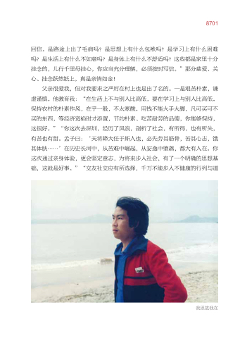 回信。是路途上出了毛病吗?是思想上有什么包袱吗?是学习上有什么困难 吗?是生活上有什么不如意吗?是身体上有什么不舒适吗?这些都是家里十分 挂念的 儿行千里母挂心 你应当充分理解 必须按时写信。”那分慈爱、关 心、挂念跃然纸上 真是亲情如金!