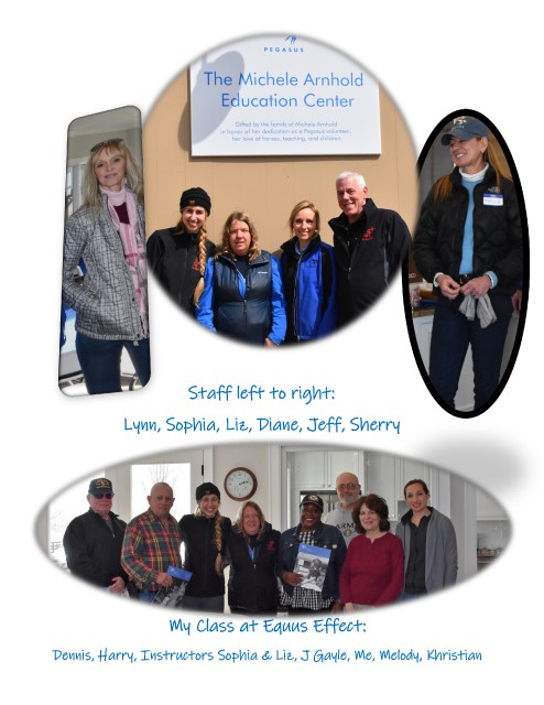 Staff left to right: Lynn, Sophia, Liz, Diane, Jeff, Sherry My Class at Equus Effect: Dennis, Harry, Instructors Sophia & Liz, J Gayle, Me, Melody, Khristian