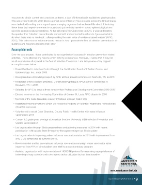 be all-inconclusive of my work in the field of Infection Prevention. I am listing some of my biggest