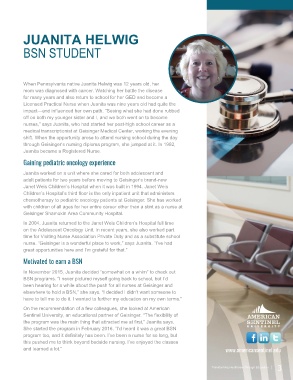 nurse. “Geisinger is a wonderful place to work,” says Juanita. “I’ve had