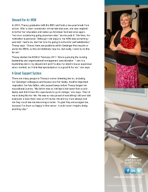 In 2014, Tracey graduated with the BSN and took a two-year break from