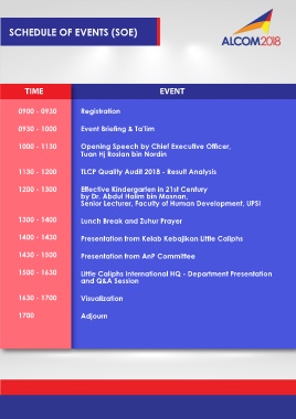 SCHEDULE OF EVENTS (SOE)