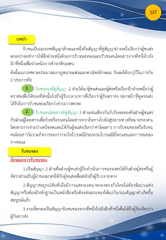 1.เป็นสัญญา 2 ฝ่ายคือฝ่ายผู้ขนส่งผู้รับด าเนินการขนของส่งให้กับฝ่ายผู้ส่งหรือผู้