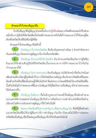 ลักษณะทั่วไปของสัญญายืมมีดังนี้