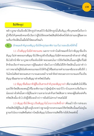 1. ลักษณะส าคัญของสัญญายืมใช้คงรูปแยกพิจารณาในรายละเอียดได้ดังนี้
