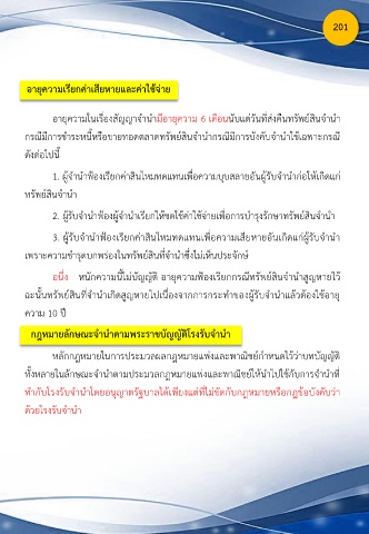 อายุความในเรื่องสัญญาจ าน ามีอายุความ 6 เดือนนับแต่วันที่ส่งคืนทรัพย์สินจ าน า