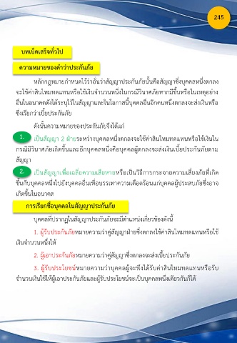 1. เป็นสัญญา 2 ฝ่ายระหว่างบุคคลหนึ่งตกลงจะใช้ค่าสินไหมทดแทนหรือใช้เงินใน