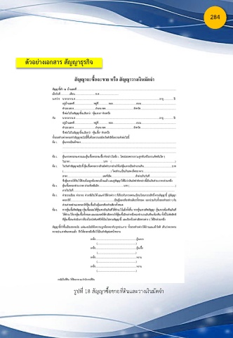 284 ตัวอย่ำงเอกสำร สัญญำธุรกิจ รูปที่ 18 สัญญาซื้อขายที่ดินและวางเงินมัดจ า