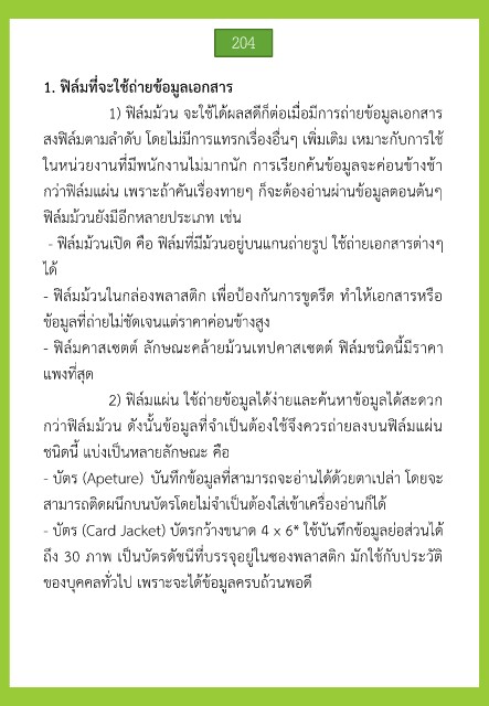 2) ฟิล์มแผ่น ใช้ถ่ายข้อมูลได้ง่ายและค้นหาข้อมูลได้สะดวก