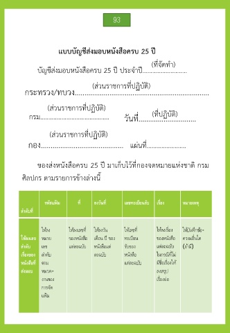 แบบบัญชีส่งมอบหนังสือครบ 25 ปี