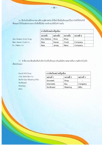 16. ชื่อห้างร้านที่น าเอาสถานที่ทางภูมิศาสตร์มาตั้งชื่อถ้าชื่อนั้นเขียนแยกไว้อย่างไรก็ให้นับค าที่