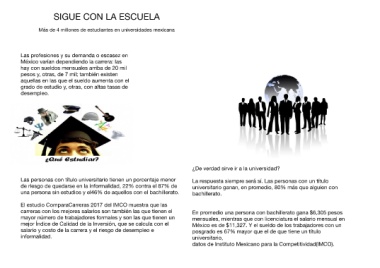 de riesgo de quedarse en la informalidad, 22% contra el 87% de universitario ganan, en promedio, 80% más que alguien con