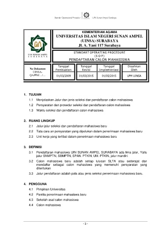 Standar Operasional Prosedur UIN Sunan Ampel Surabaya