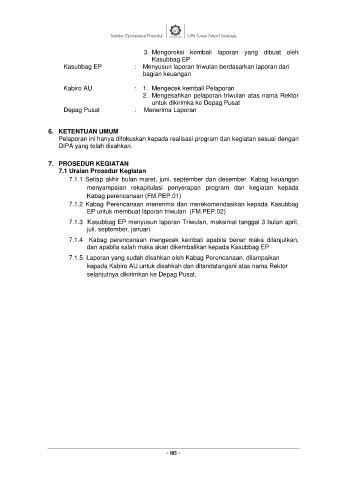 7.1.1 Setiap akhir bulan maret, juni, september dan desember. Kabag keuangan