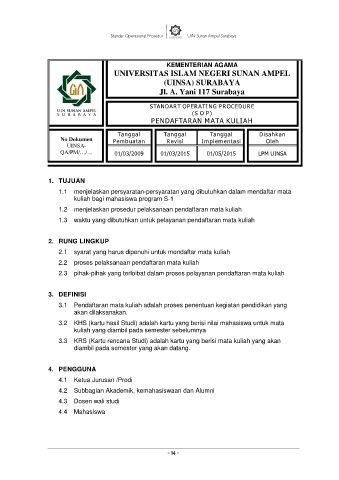 Standar Operasional Prosedur UIN Sunan Ampel Surabaya